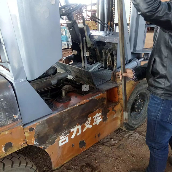 5、不以標準叉車來比對參數(shù):如輪胎型號、門架結(jié)構(gòu)、配重(實鐵的用錘子敲的時候聲音“丁丁”;水泥的只是鐵皮包圍,中間是水泥,鐵錘敲的時候聲音“咚咚”)和車架不能分離。