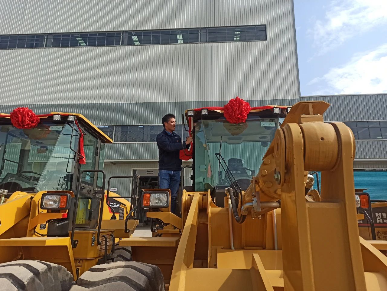 在大空港項目工地現(xiàn)場,一批廈工裝載機、挖掘機、叉車系列產(chǎn)品整齊列隊,在現(xiàn)場嘉賓的祝福下,正式批量交付大空港工程項目方使用。