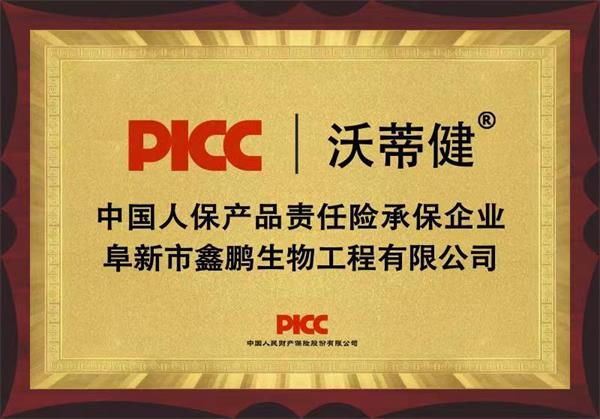 阜新市鑫鵬生物工程有限公司旗下沃蒂健、黑晶尖、芯霸、鑫鵬沃普爾、田寶畝、久畝神、九畝神、炭精神、稔如意、棚地神、松峰山、金禾財(cái)有根等系列產(chǎn)品,順利通過(guò)PICC中國(guó)人民保險(xiǎn)審核,為企業(yè)全線產(chǎn)品承保產(chǎn)品責(zé)任險(xiǎn),證明公司產(chǎn)品的真實(shí)、合格,也標(biāo)志著阜新市鑫鵬生物工程有限公司為消費(fèi)者提供安全保障的決心。