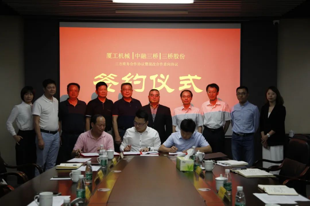 福建省機械工業(yè)聯(lián)合會會長許振明;廈工股份公司總裁林春明、副總裁兼財務總監(jiān)李喜勇、總工程師黃鶴艇;中融三橋公司蔡報軍、董事長姜洋、總經(jīng)理吳繼成出席簽約儀式。