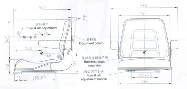 座椅為叉車及其它工業(yè)車輛設(shè)計(jì)的經(jīng)濟(jì)型駕駛員座椅。它沒有懸浮裝置。但其座背、靠背均采用真空發(fā)泡一次成型技術(shù),便于拆換。